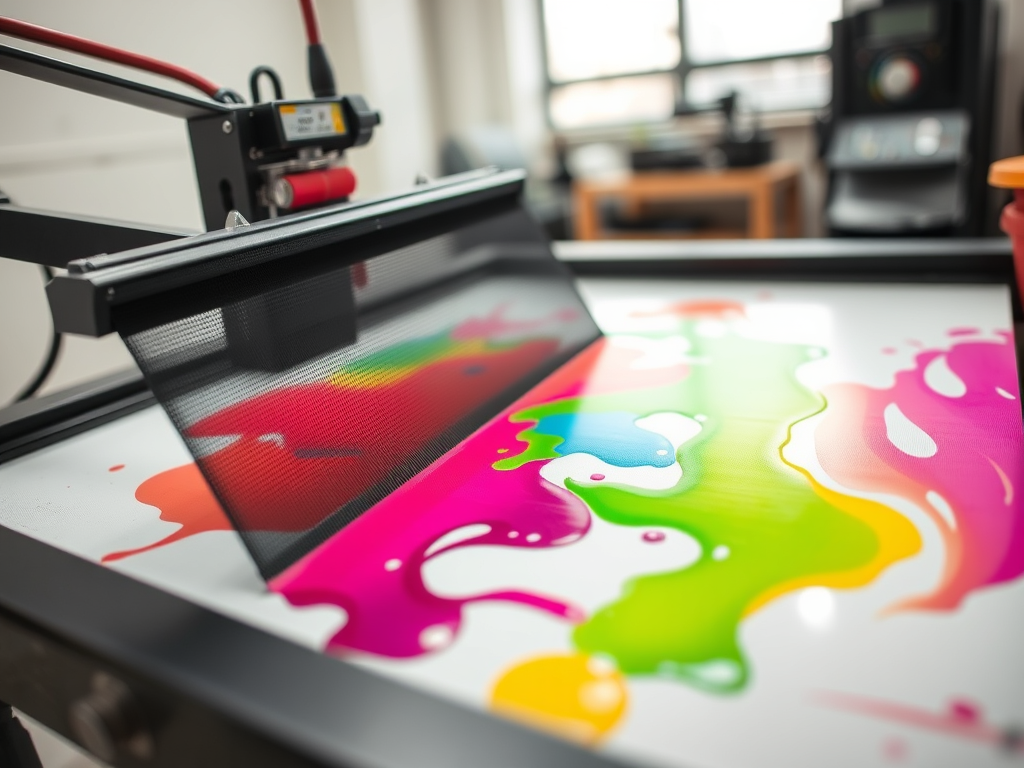Screen printing pushes ink onto fabric through a mesh screen. The ink sits on top of the fabric rather than soaking in like it does with DTG printing.
