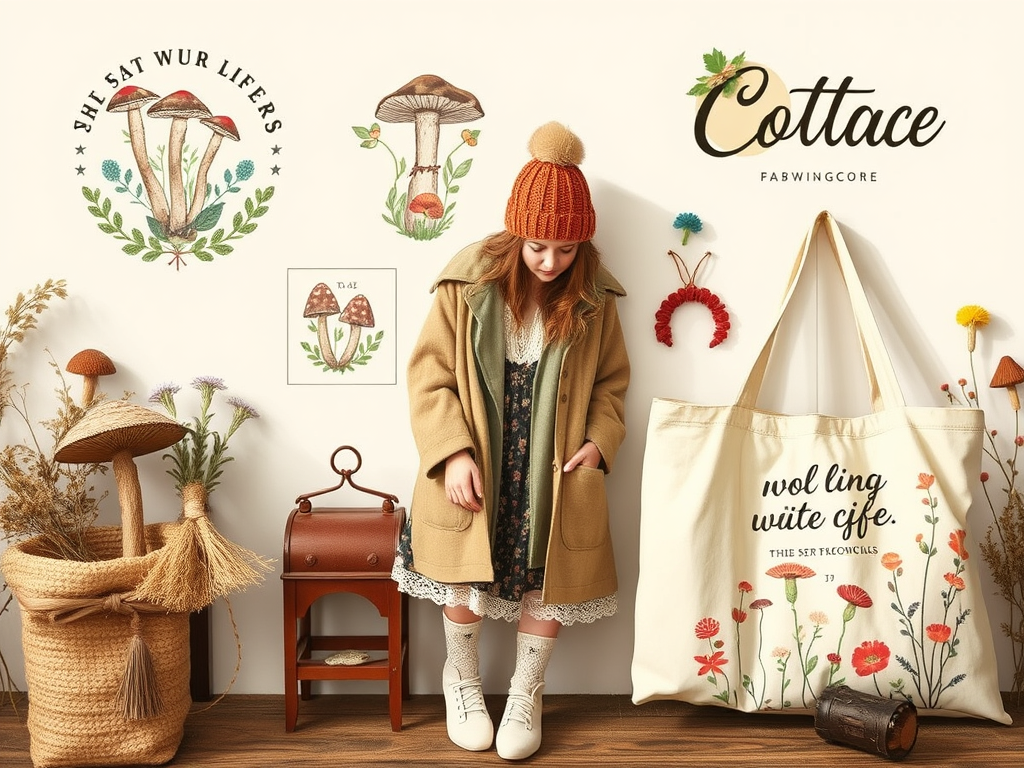 For your POD designs, focus on vintage-inspired graphics, delicate embroidery, and nature-themed elements—such as mushrooms, wildflowers, & poetic typography. To complete the look, add hand-crafted accessories like simple jewelry, knitted hats, cozy socks, & outerwear.