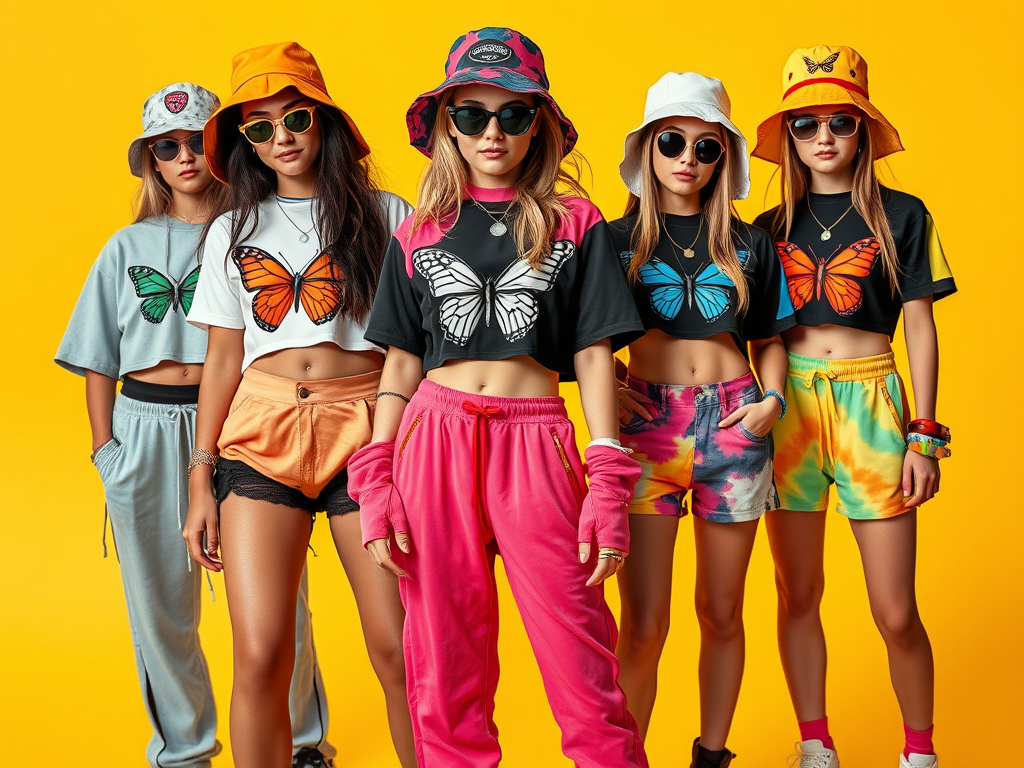Gen Alpha’s take on Y2K fashion brings early 2000s styles back with a modern twist. Key elements include crop tops, mini skirts, velour tracksuits, graphic tees, butterfly motifs, & bold color-blocking.